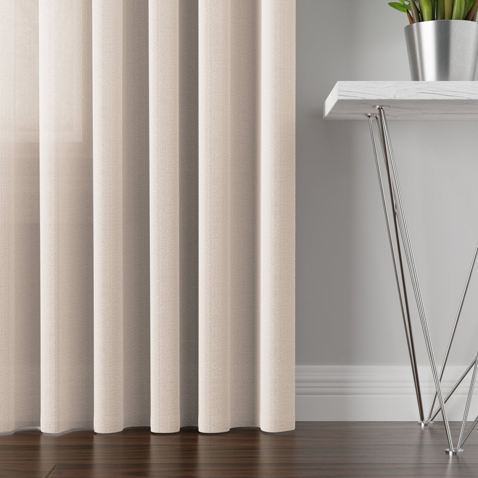 Het gordijn heeft een ingenaaide wave-tunnelzoom, waardoor het eenvoudig direct aan een gordijnroede kan worden opgehangen – zonder ringen of haken. Samen met het subtiele verzwaringsband aan de onderzijde ontstaat een rustige, gelijkmatige valling en een duidelijke, consistente golfbeweging over de hele lengte.