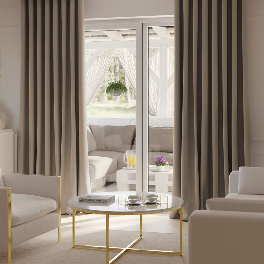 De dicht geweven, zware stof blokkeert 100% van het licht en valt tegelijkertijd in elegante waves, wat het interieur een stijlvolle en exclusieve uitstraling geeft.