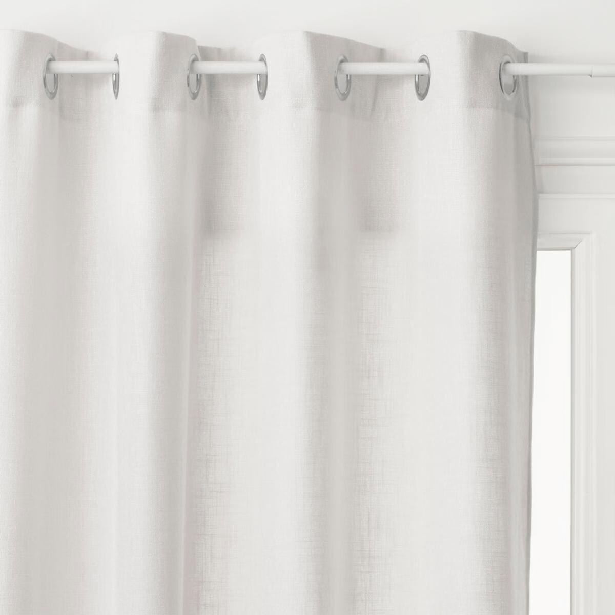 LEON is een lichtdimmend gordijn in ivoorwit dat een rustige sfeer in huis creëert. De dichtgeweven stof verzacht het licht op een aangename manier zonder het volledig te blokkeren, en geeft de ruimte een warme, uitnodigende uitstraling. Dankzij de geïntegreerde metalen ringen is het eenvoudig op te hangen – ook op een gordijnroede zonder boren.